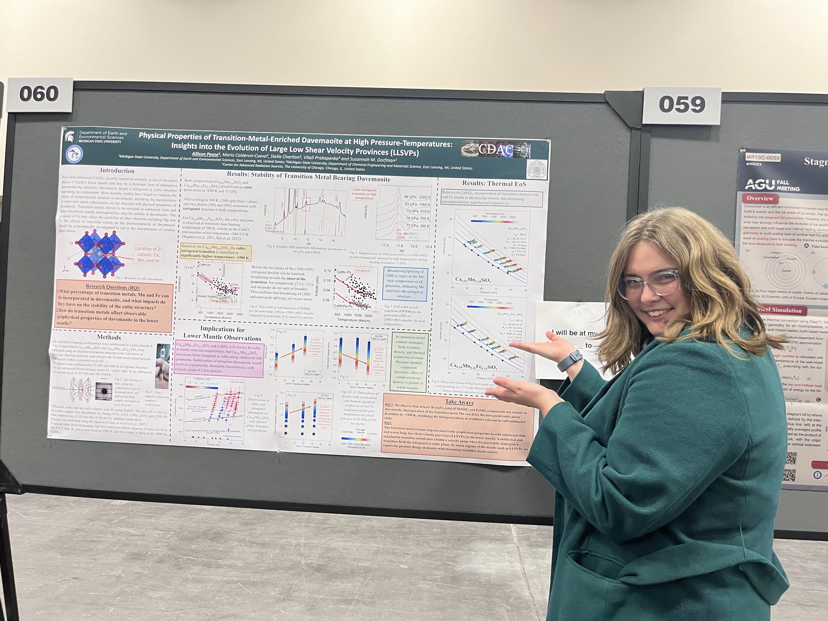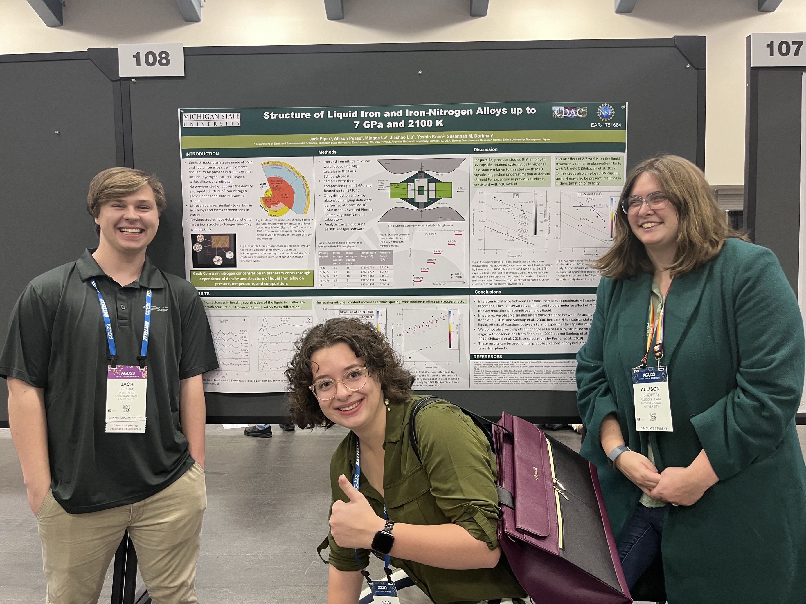 Fall AGU 2023! Posted on December 17, 2023 by thesuki Allison Pease, Luisa Chavarria, and Jack Piper (and honorary group member Heidi Krauss) presented 3 posters at the Fall Meeting of the American Geophysical Union! Share this: Click to share on X (Opens in new window) X Click to share on Facebook (Opens in new window) Facebook Like Loading... Related